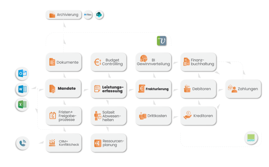 Unsere integrierte Lösung bietet Ihnen nicht nur eine Antwort auf Ihre Herausforderungen, sondern auch signifikante Vorteile, die das Mandatsmanagement in Ihrer Kanzlei revolutionieren werden.